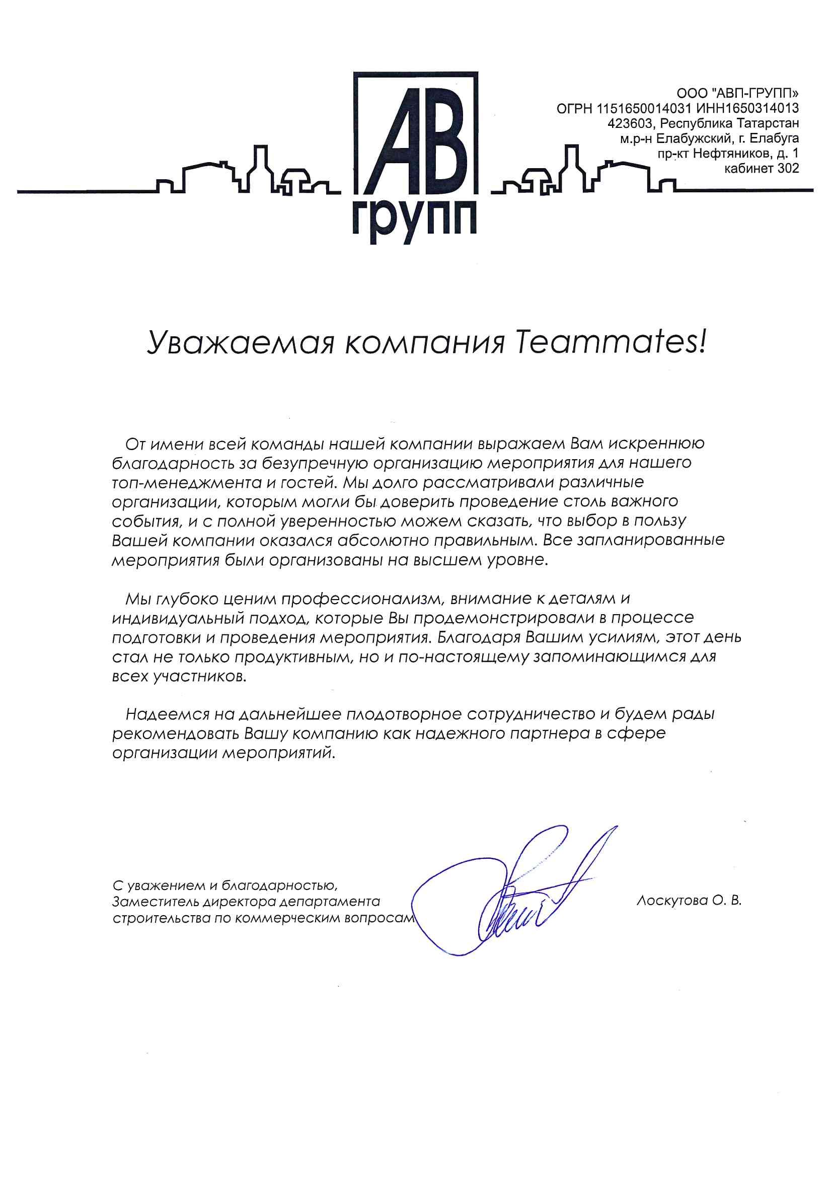 Благодарственные письма — это не просто слова, а реальные отзывы клиентов, которые воспользовались услугами нашей команды по организации тимбилдинга и корпоративных мероприятий в Казани. Компания Teammates известна своим высоким качеством услуг и индивидуальным подходом к каждому проекту